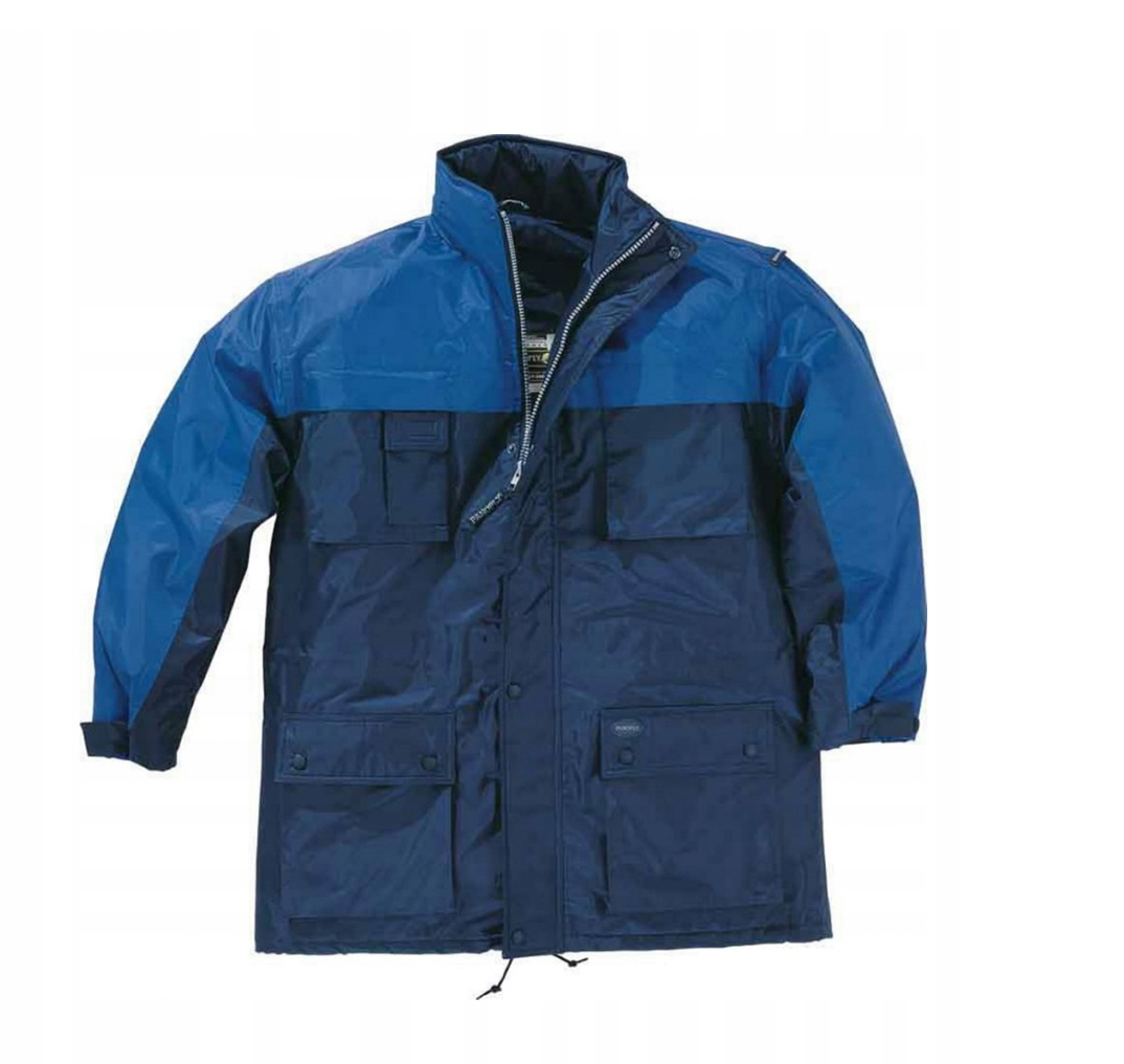 Dwukolorowy, niebiesko-granatowy design został opracowany tak, aby połączyć funkcjonalność z estetyką i nowoczesnym wyglądem, co sprawia, że kurtka dobrze prezentuje się podczas pracy na zewnątrz.
