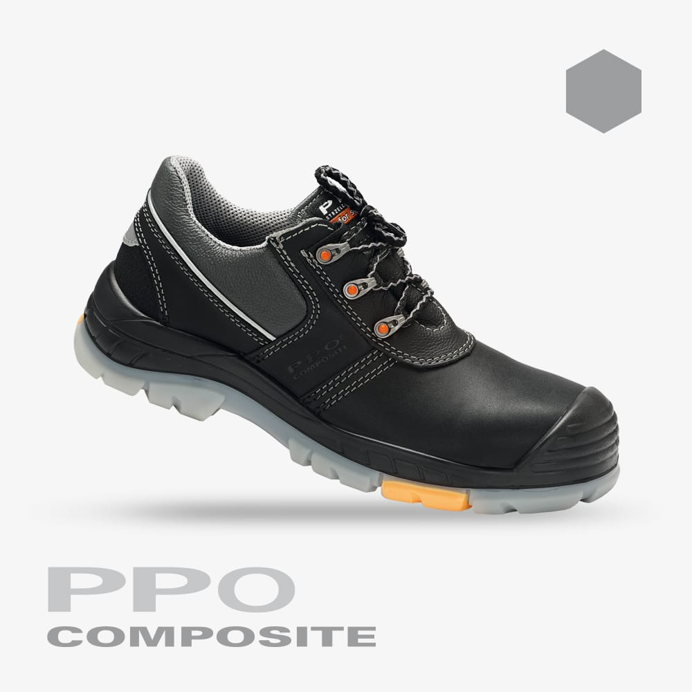 Obuwie posiada niemetalowe oczka i elementy odblaskowe, które bez wątpienia zwiększają widoczność i bezpieczeństwo pracownika. Dodatkowa ochrona pięty wykonana z materiału Matrix® zwiększa trwałość butów. Podeszwa PU/TPU z systemem Shockabsorber jest odporna na oleje, benzynę, inne rozpuszczalniki oraz krótkotrwały kontakt z temperaturą do 120°C. Lity bieżnik termoplastyczny oraz spieniona międzypodeszwa w rezultacie zapewniają doskonałą giętkość i amortyzację nierówności podłoża.