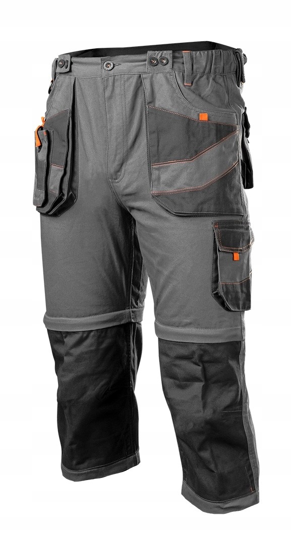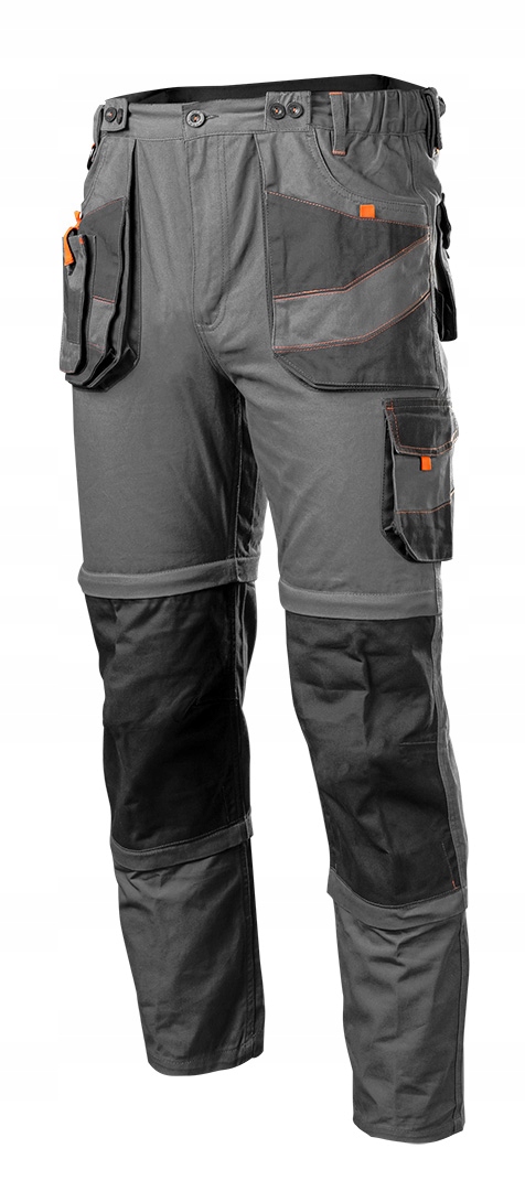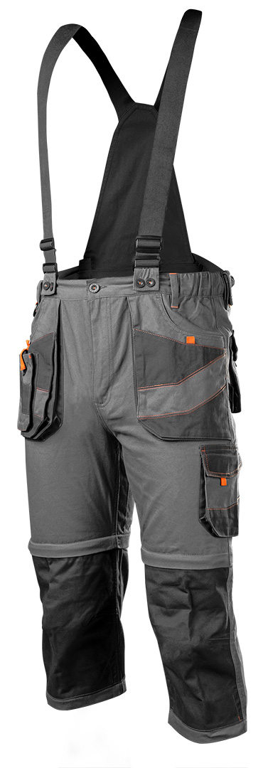 Spodnie robocze 6 w 1 NEO (nr ref. 81-321-XXL) wykonane z bawełnianej tkaniny typu twill to wygodne i wytrzymałe spodnie do wszelkich prac, zawodowych jak i domowych. Dzięki zastosowaniu podwójnych suwaków można skrócić spodnie robocze do 3 długości: krótkie, rybaczki i długie jak również z szelkami lub bez. Spodnie można nosić na 6 sposobów. Aby pomieścić różne narzędzia spodnie zostały zaopatrzone w wielofunkcyjne kieszenie. Posiadają również możliwość włożenia nakolanników. Jakość produktu jest potwierdzona certyfikatem CE na zgodność z normą EN ISO 13688:2013.